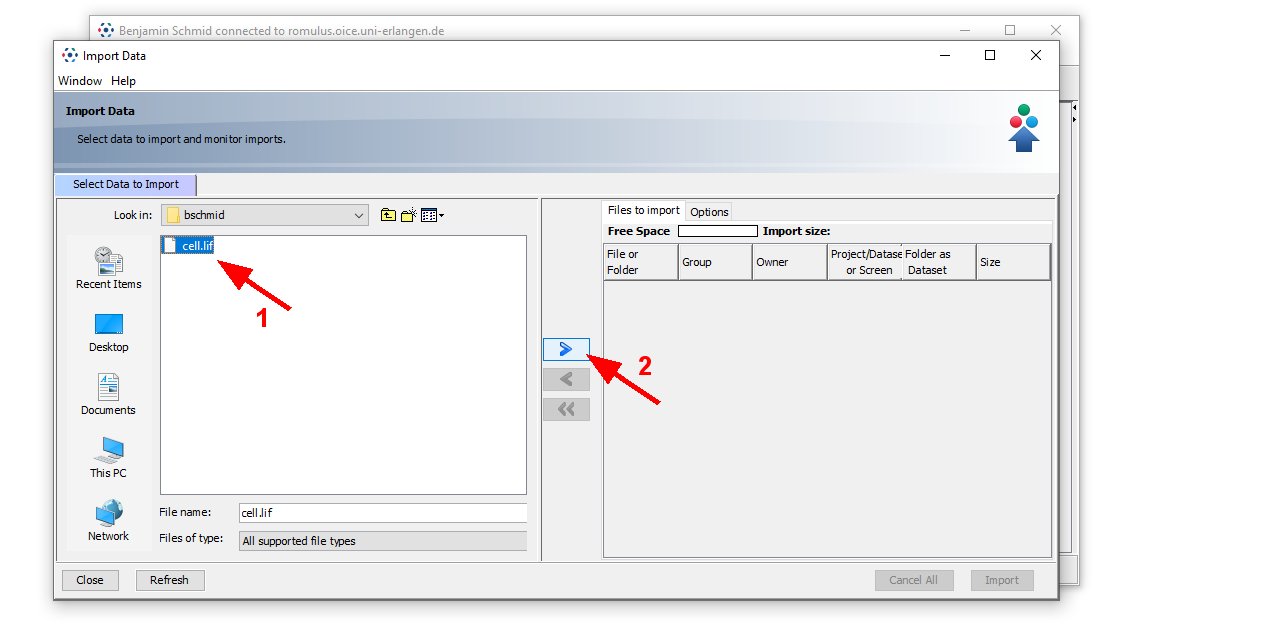 button to make the new images visible. To conduct quantitative and qualitative image analysis that cannot be performed within the OME framework, users have to download the images to the respective computers. This can easily be done with both OMERO.web (the browser interface) and OMERO.insight (the Java client).