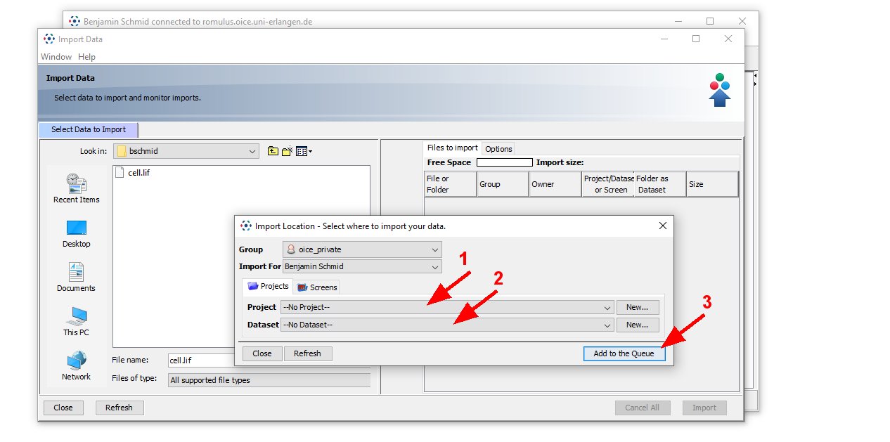 The OMERO server supports multiple front ends to add, download and analyse image data. Currently, there are two o ptions available for OICE users: